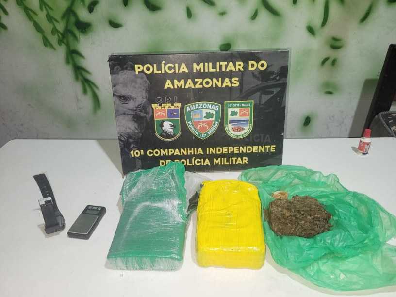Segundo a 10ª Companhia Independente da Polícia Militar – CIPM Maués, na noite da última terça-feira (27), a Guarnição de Serviço em Patrulhamento Ostensivo na Rua Joseph Mc Comb, Bairro Ramalho Junior zona norte da cidade, avistaram dois indivíduos próximos a uma residência, os mesmos ao avistar a VTR da PM, se aproximando tentaram empreender fuga. De acordo com a PM, durante o cerco policial um dos indivíduos tentou se livrar de uma sacola jogando-a em cima de uma mesa, a Equipe Policial conseguiu deter o elemento e durante Abordagem e Revista, foi constatado que dentro da sacola que o indivíduo tentou se desfazer havia, (750g) de Substância Entorpecente Supostamente (Cocaína), (560g) de Substância Entorpecente Supostamente (Oxi), (400g) de Substância Entorpecente Supostamente (Maconha), (01) Balança de Precisão e (01) Relógio de Pulso.