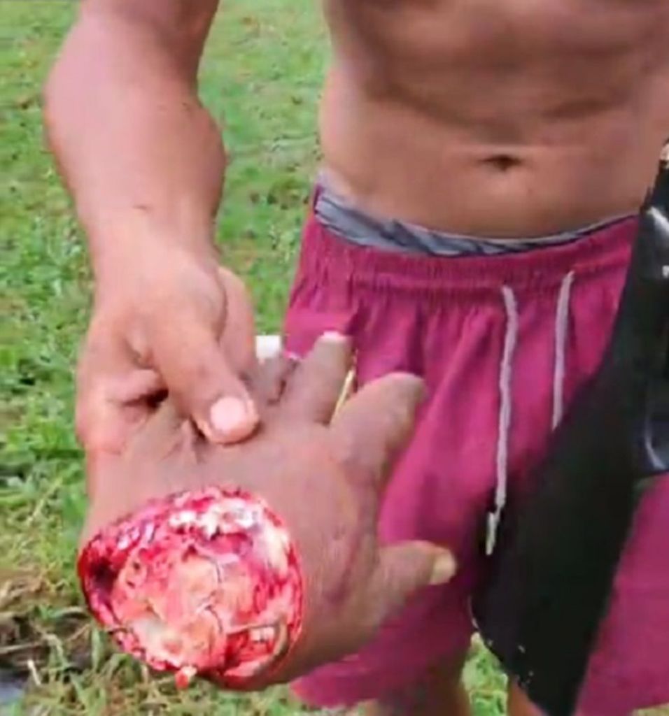 Um vídeo muito forte circula nas redes sociais na tarde desta sexta-feira (10), quando um homem teve a mão torada por um bandido e o comparsa dele em Manacapuru (a 69 quilômetros de Manaus). O filho desse homem gravou o vídeo segurando a mão torada do pai e com uma arma, dizendo que atirou nos criminosos.