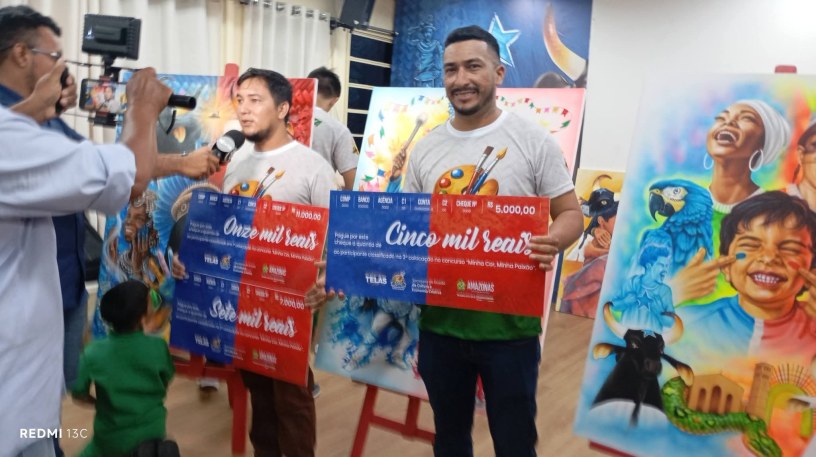 O artista plástico maueense Pedro Paulo Néo, descendente de imigrantes japoneses foi o grande destaque no referido concurso oficial de telas do Festival Folclórico da Ilha Tupinambarana deste ano de 2026. Pedro é persistente, participando em concursos anteriores conquistando boas colocações.